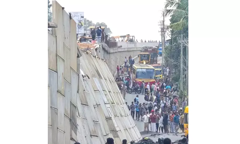 മണ്ണിടിഞ്ഞ് താഴ്ന്ന് ദേശീയപാതയുടെ കൂറ്റൻ പാർശ്വഭിത്തി തകരുകയായിരുന്നു. ഇത് ഇടിഞ്ഞ് താഴ്ന്നത് താഴെ പോകുന്ന സർവീസ് റോഡിലേക്കാണ്. ഇതോടെ സർവീസ് റോഡ് വിണ്ടുകീറി. ഈ സമയം ഇതുവഴി പോകുകയായിരുന്ന സ്കൂൾ ബസ് അടക്കം വാഹനങ്ങൾ തലനാരിഴക്കാണ് രക്ഷപ്പെട്ടത്. സ്കൂൾ ബസിൽനിന്ന് കുട്ടികളെ ഇറക്കി സുരക്ഷിത സ്ഥാനത്തേക്ക് മാറ്റി. കൂടാതെ കാറുകളടക്കം നിരവധി വാഹനങ്ങളും റോഡിൽ കുടുങ്ങി.